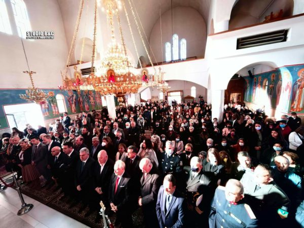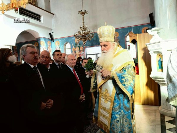 Προηγήθηκε η Θεία Λειτουργία και ο Μεγάλος Αγιασμός στον Προσκυνηματικό Ιερό Ναό του Άγιου Αναστασίου στο Ναύπλιο, χοροστατούντος του Σεβασμιωτάτου Μητροπολίτη Αργολίδας κ. Νεκταρίου, παρουσία των στρατιωτικών και πολιτικών αρχών του τόπου και πλήθους πιστών.