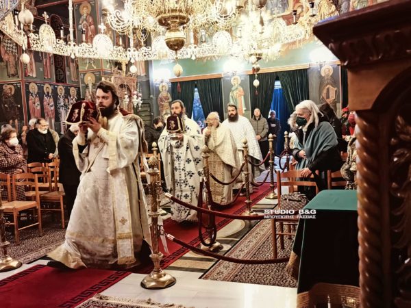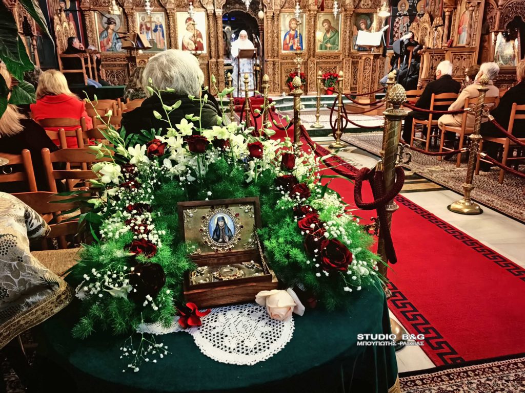 Την παραμονή της εορτής μεταφέρθηκε από τον Μητροπολίτη Αργολίδος κ. Νεκτάριο τεμάχιο του Ιερού Λειψάνου του Αγίου προς προσκύνηση. Ακολούθησε Μέγας Αρχιερατικός `Εσπερινός χοροστατούντος του Σεβασμιωτάτου.