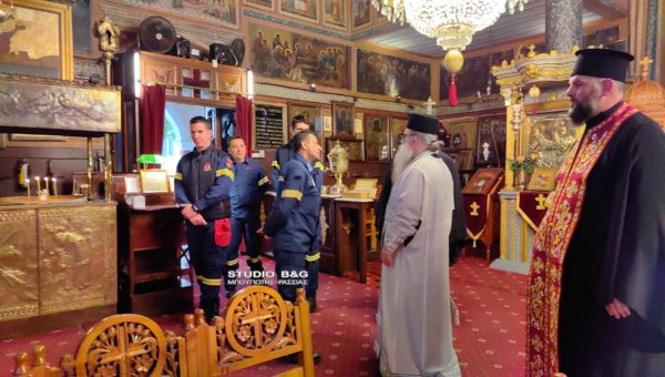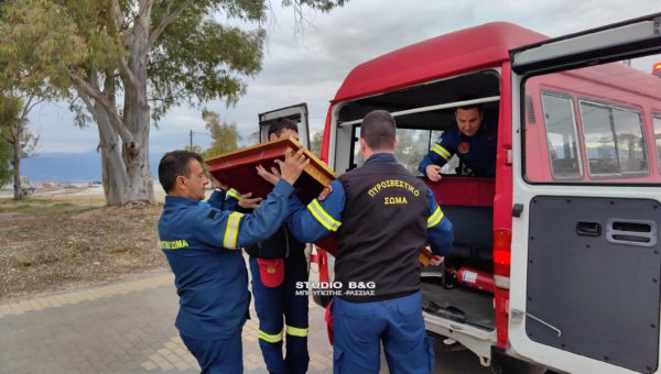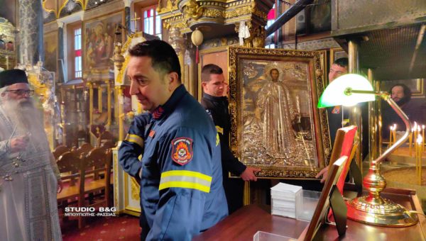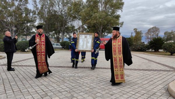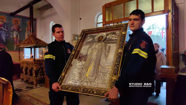 Η μετακομιδή έγινε τιμητικά με όχημα της Πυροσβεστικής Υπηρεσίας και πυροσβέστες από την ΠΥ Ναυπλίου. Η εικόνα τοποθετήθηκε σε ειδικό κουβούκλιο και τέθηκε προς προσκύνηση και στην συνέχεια εψάλη η Ιερά Παράκληση του Αγίου.