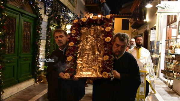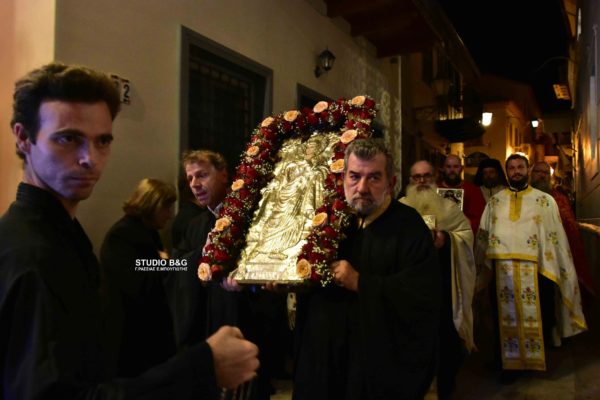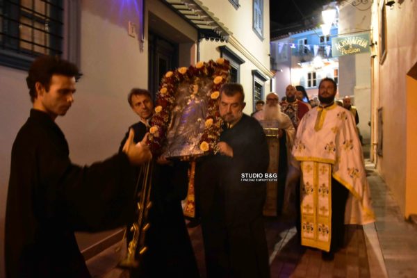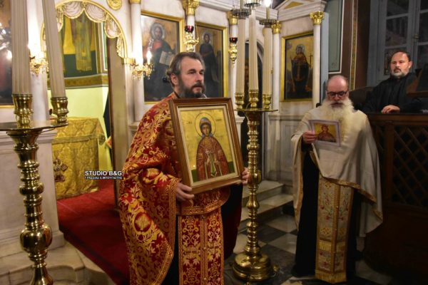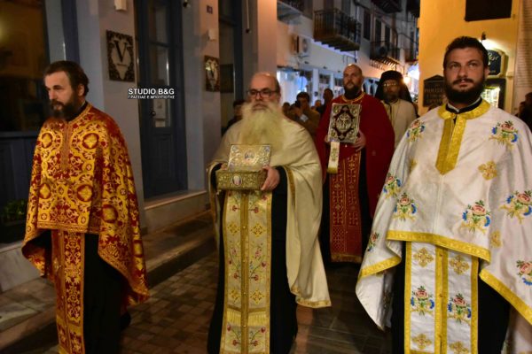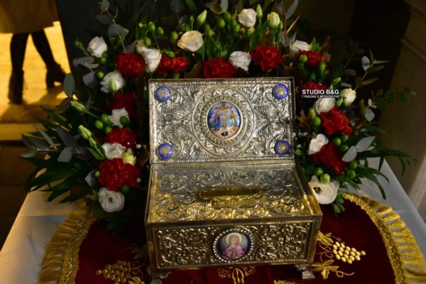 Μετά το πέρας του εσπερινού ακολούθησε η λιτάνευση της Ιεράς εικόνας της Αγίας στην πόλη του Ναυπλίου προς ευλογία των κατοίκων παιανιζούσης της Φιλαρμονικής του Δήμου Ναυπλιέων.