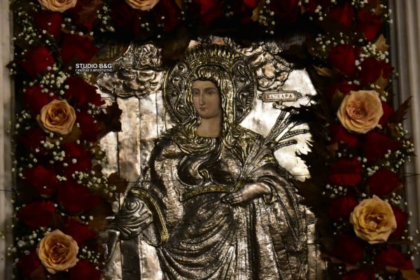 Σήμερα η Εκκλησία εορτάζει την μνήμη της Αγίας ενδόξου Μεγαλομάρτυρος Βαρβάρας, η οποία τιμάται ιδιαιτέρως στην πόλη του Ναυπλίου στον ιστορικό Ιερό Ναό του Αγίου Σπυρίδωνα.