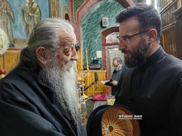 Ευχαρίστησε φυσικά για την μεγάλη του προσφορά όλα αυτά τα χρόνια στο ναό τον πρώην εφημέριο π. Κωνσταντίνο Ζαφείρη και του ευχήθηκε ότι καλύτερο και του απένειμε το οφίκιο του Σταυροφόρου Οικονόμου.