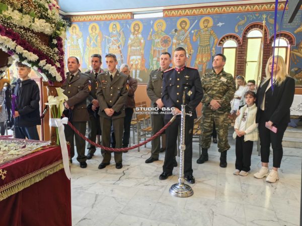Την περιφορά του Επιτάφιου ακολούθησαν αξιωματικοί, οπλίτες και αρκετοί πολίτες. Της πομπής παιάνιζε πένθιμα η φιλαρμονική του Δήμου Ναυπλιέων υπό την διεύθυνση του μαέστρου Θεοδόση Αντωνιάδη. Την ακολουθία του επιταφίου τέλεσε ο εφημέριος π. Θεόδωρος Στεργίου.