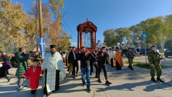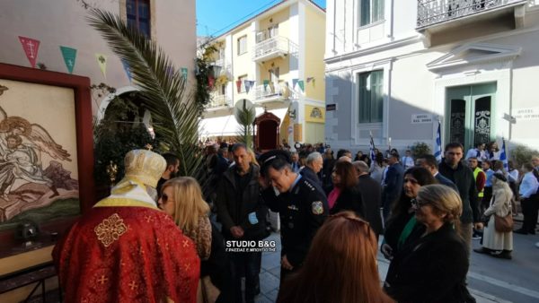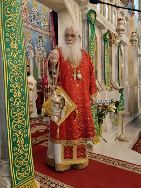 Κατά την θεία λειτουργία προεξήρχε ο Σεβασμιώτατος Μητροπολίτης Θηβών, Λεβαδείας και Αυλίδος κ. Γεώργιος και συγχοροστατούντων των Μητροπολιτών Άρτης κ. Καλλινίκου και Αργολίδος κ. Νεκταρίου. Μετά το πέρας της Θείας Λειτουργίας ακολούθησε λιτάνευση της Ιεράς Εικόνας του Αγίου στην πόλη του Ναυπλίου προς ευλογία των κατοίκων. Στη λιτανευτική πομπή συμμετείχαν μαθητές από τα σχολεία της πόλης με προπομπό την δημοτική φιλαρμονική του Δήμου Ναυπλιέων.