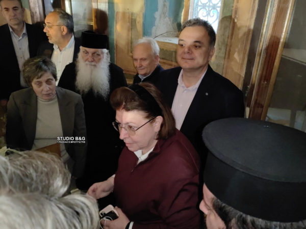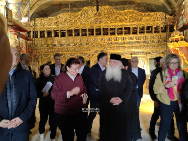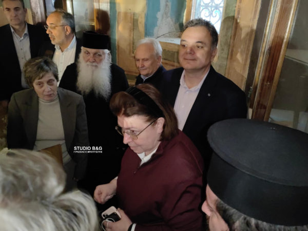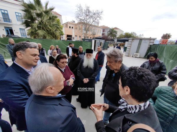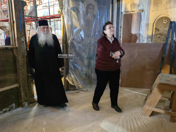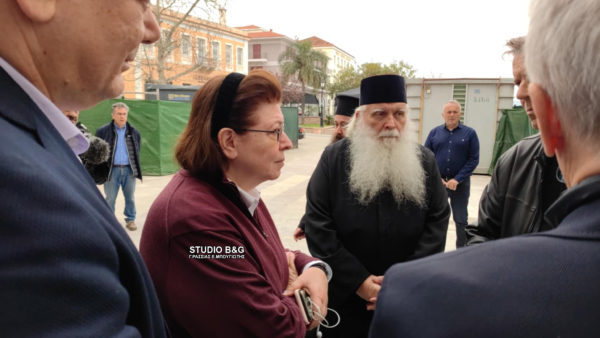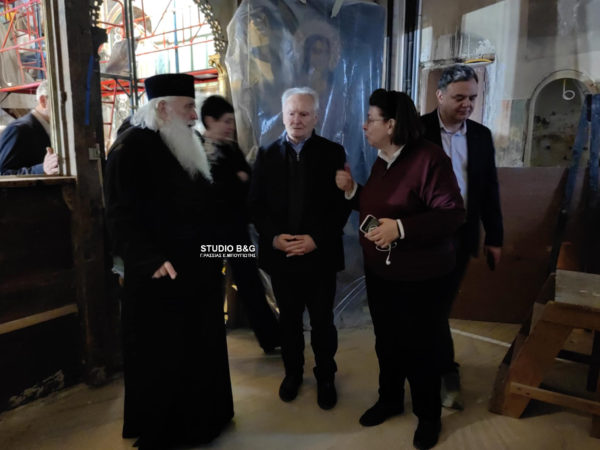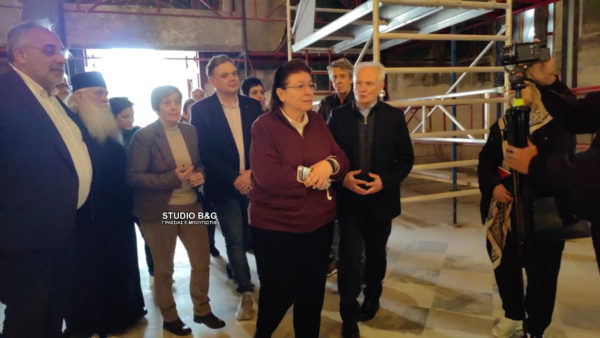 Η υπουργός συνέχισε την αυτοψία στα εργοτάξια του Τελωνείου, του Ι.Ν. του Αγίου Νικολάου, όπου συναντάθηκε με τον Σεβασμιώτατο Μητροπολίτη Αργολίδος κ. Νεκτάριο και τον νέο εφημέριο του ναού π. Νικόλαο Μίχο και είδαν από κοντά τις εργασίες στο μνημείο.