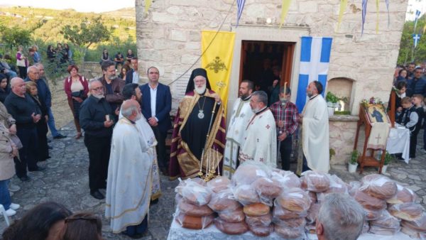 Ευλόγησε τους προσφερόμενους άρτους, ομίλησε στο πολυπληθές εκκλησίασμα, για το πρόσωπο του τιμώμενου Αγίου και τη μεγάλη παρρησία Του προς τον Θεό. Ανάμεσα στο πολυπληθές εκκλησίασμα παρέστησαν ο Δήμαρχος Αρχανών-Αστερουσίων κ. Μανόλης Κοκοσάλης και ο Πρόεδρος του Δημοτικού Συμβουλίου Αρχανών-Αστερουσίων κ. Ιωάννης Τζαγκαράκης.