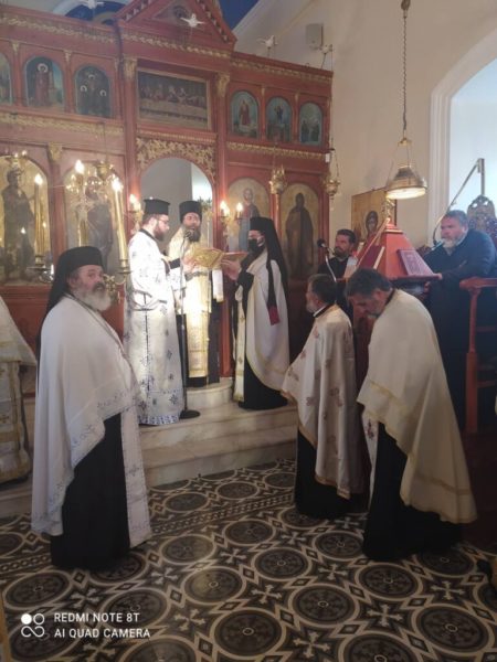 Στην επικήδεια προσλαλιά του ο Θεοφιλέστατος αναφέρθηκε στην προσωπικότητα και το διδακτικό έργο του εκλιπόντος και εξήρε τα χαρίσματά του. Επίσης τόνισε την στενή σχέση του με την Α. Θ. Π. τον Οικουμενικό μας Πατριάρχη Κύριο Κύριο ΒΑΡΘΟΛΟΜΑΙΟ αλλά και με το Οικουμενικό Πατριαρχείο. Τέλος, μετέφερε τις συλλυπητήριες ευχές και την συμπάθεια του Σεβασμιωτάτου Μητροπολίτη Αρκαλοχωρίου κ. Ανδρέα, ο οποίος ευρίσκετο εκτός Κρήτης.