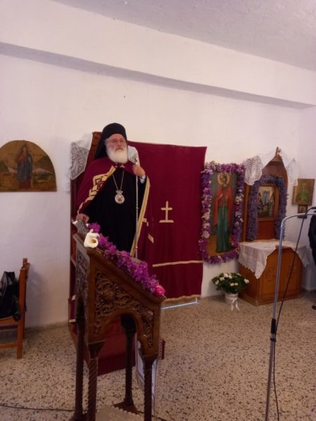 Η ακολουθία τελέστηκε στον προαύλιο χώρο του Ναού διότι η Εκκλησία καταστράφηκε ολοσχερώς απο τον σεισμό της 27ης Σεπτεμβρίου 2021. Στον λόγο του ο Σεβασμιώτατος μίλησε καταλλήλως στο πολυπληθές εκκλησίασμα για την συνάντησης του Χριστού με τη Σαμαρείτιδα.