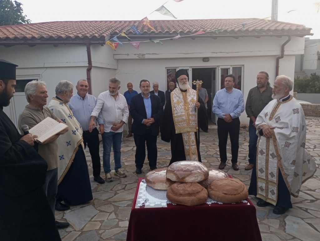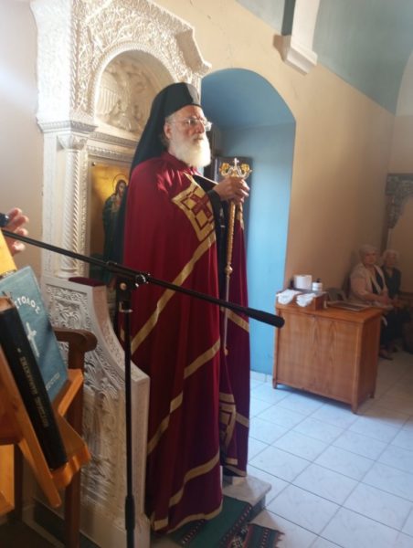 Τέλος, τέλεσε τρισάγιο στον μακαριστό Αρχιμανδρίτη Ευμένιο Καραπιδάκη, ο οποίος, συνετέλεσε στην ανέγερση του σεισμόπληκτου Ι. Ναού της Αναλήψεως. Η ακολουθία τελέστηκε στον Ιερό Ναό Αγίου Ιωάννου διότι ο Ναός της Αναλήψεως έχει υποστεί ζημιές απο τον σεισμό της 27ης Σεπτεμβρίου.