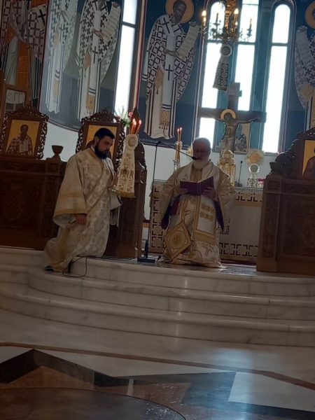 Αμέσως μετά τη Θεία Λειτουργία, κατά την τάξη της Εκκλησίας μας, τελέσθηκε ο Εσπερινός της Γονυκλισίας.
