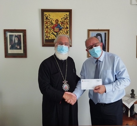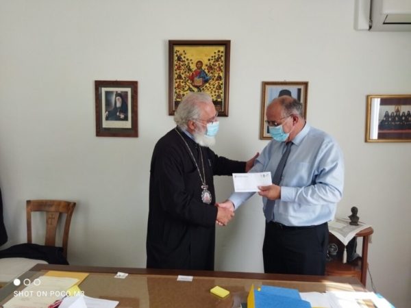 Ο κ. Επανωμεριτάκης επέδωσε ένα σεβαστό ποσό στην Ιερά Μητρόπολη Αρκαλοχωρίου, εκ μέρους της Τράπεζας Χανίων, εκφράζοντας με τον τρόπο αυτό την αλληλεγγύη και την συμπαράσταση τους προς τους σεισμοπαθείς.