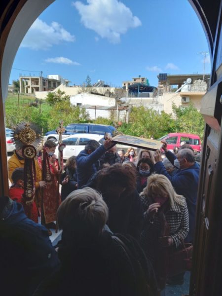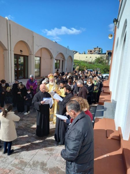 Στο τέλος της Θείας Λειτουργίας ο Σεβασμιώτατος αναφέρθηκε εκτενώς στην εορτή της αναστηλώσεως των ιερών εικόνων και ακολούθως πραγματοποιήθηκε πέριξ του Ιερού Ναού, κατά την τάξη, η λιτάνευση των ιερών εικόνων σε ανάμνηση της αναστηλώσεώς τους το έτος 843, όπου κατά την είσοδο τον πιστών στον Ιερό Ναό όπως είθισται πέρασαν κάτω απ’ την εικόνα του προστάτη Αγίου Ανδρέα.
