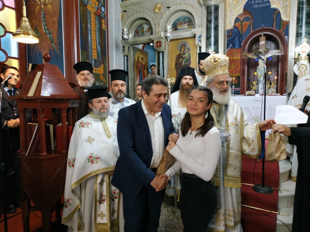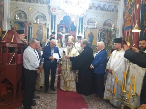 Στο τέλος της Θείας Λειτουργίας έλαβε χώρα η βράβευση των αριστούχων μαθητών των σχολείων της Βιάννου, από την Ιερά Μητρόπολη και ακολούθως η Ενορία απένειμε τιμητική πλακέτα στον πρώην Δήμαρχο Βιάννου κ. Παύλο Μπαριτάκη.