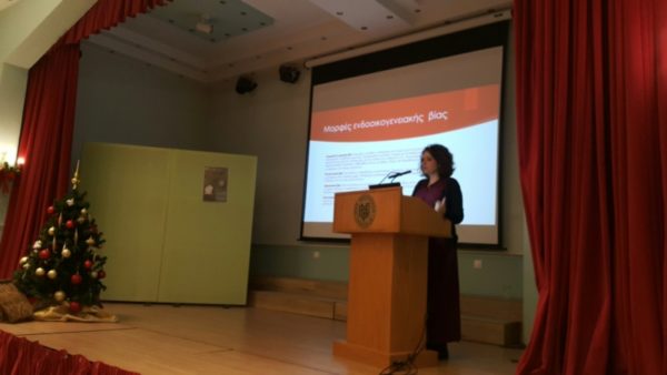 Η ομιλήτρια ξεκίνησε από το βασικό πως στην βία υπάρχει έλεγχος και ασυμμετρία στην σχέση. Τα περισσότερα θύματα είναι γυναίκες. Ενδοοικογενειακή βία ασκείται από το ένα μέλος σε άλλο. Είναι σεξουαλική, ψυχολογική, σωματική ακόμη και οικονομική, παρουσιάζεται με πολλές μορφές, ενώ δεν χρειάζεται θύμα και θύτης να ζουν στο ίδιο σπίτι. Ταυτόχρονα, η κα. Φείδη απομυθοποίησε τους μύθους της βίας εντός της οικείας, ενώ έδωσε καίριες απαντήσεις στα ερωτήματα που προέκυψαν.