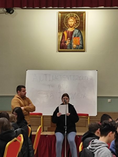 Καθώς φέτος έχει αφιερώσει όλες τις δράσεις της για την πρόληψη κατά της βίας, στο Πνευματικό Κέντρο της οργάνωσε σε αγαστή συνεργασία με το ΚΕΘΕΑ Ηπείρου και Δ. Μακεδονίας, μία εορταστική εκδήλωση – βιωματικό εργαστήρι, τόσο για τους καθηγητές, όσο και για τους μαθητές της Α’ Λυκείου των σχολείων των Γρεβενών με τίτλο: «Αντιμετωπίζοντας την βία στο σχολείο».