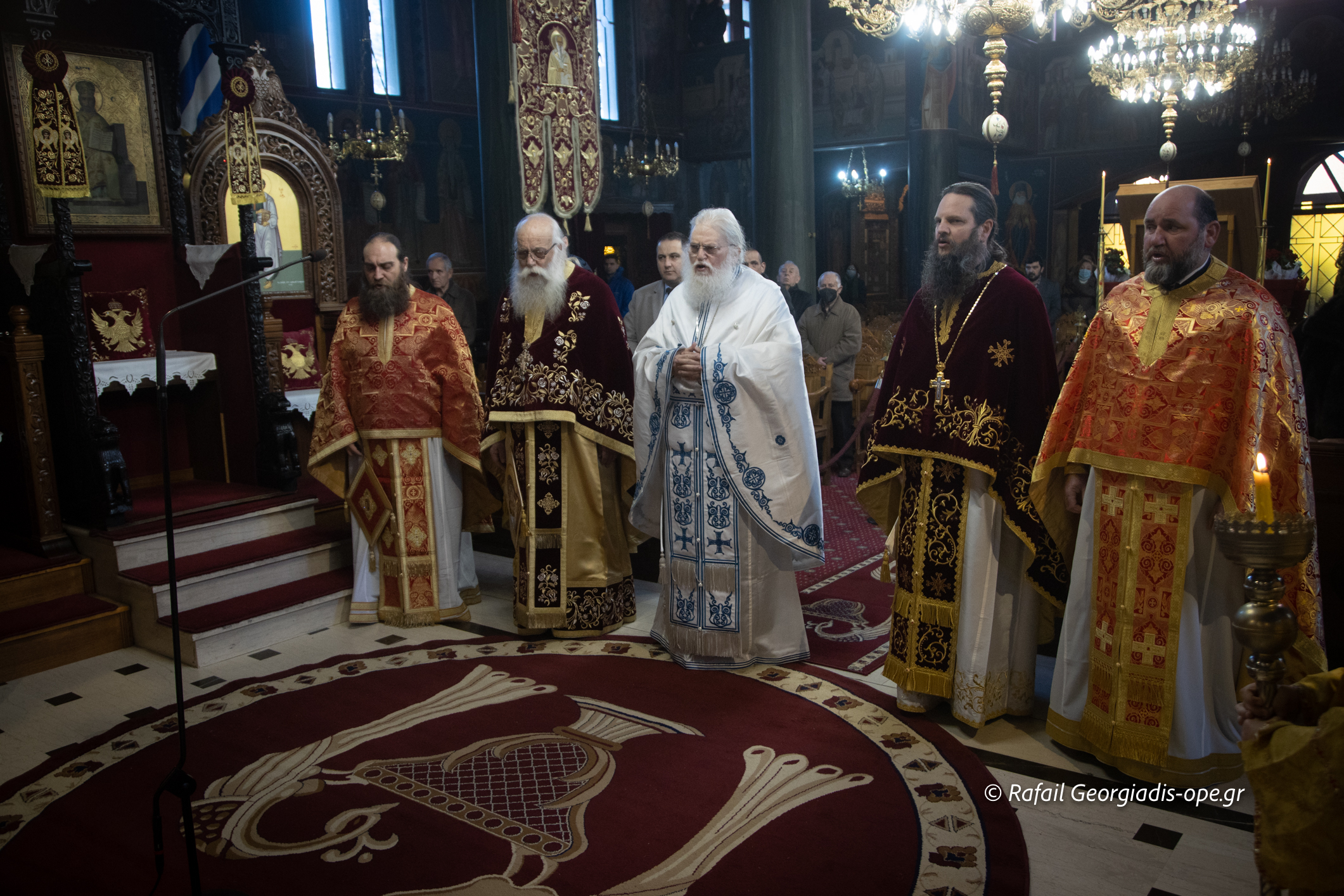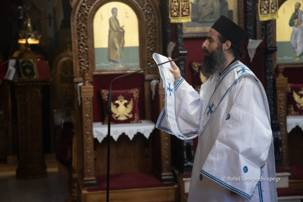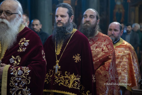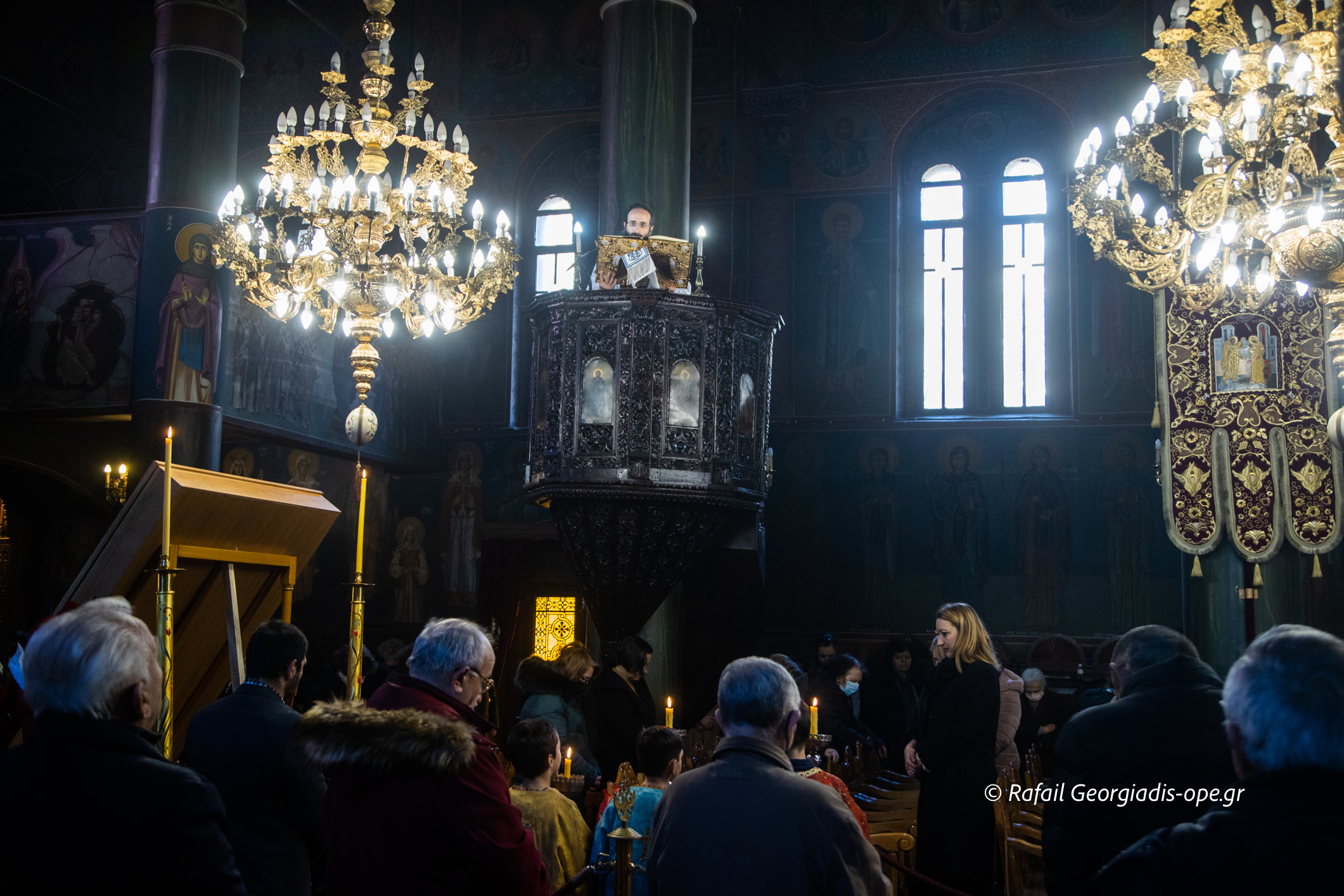 Το μυστήριο της Θείας Ευχαριστίας τέλεσε ο Καθηγούμενος της Ιεράς Μεγίστης Μονής Βατοπαιδίου Γέρων Εφραίμ, πλαισιούμενος από τους εφημερίους του ναού. Συμπροσευχόμενος στο ιερό βρέθηκε ο επιχώριος Μητροπολίτης Γρεβενών κ. Δαβίδ.