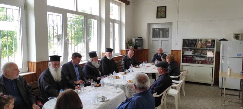 O Σεβασμιώτατος κήρυξε τον θείο λόγο και μετά το πέρας της Θείας Λειτουργίας μετέβη στον πολιτιστικό σύλλογο του χωριού όπου είχε τη χαρά να συνομιλήσει με τους λιγοστούς κατοίκους του.