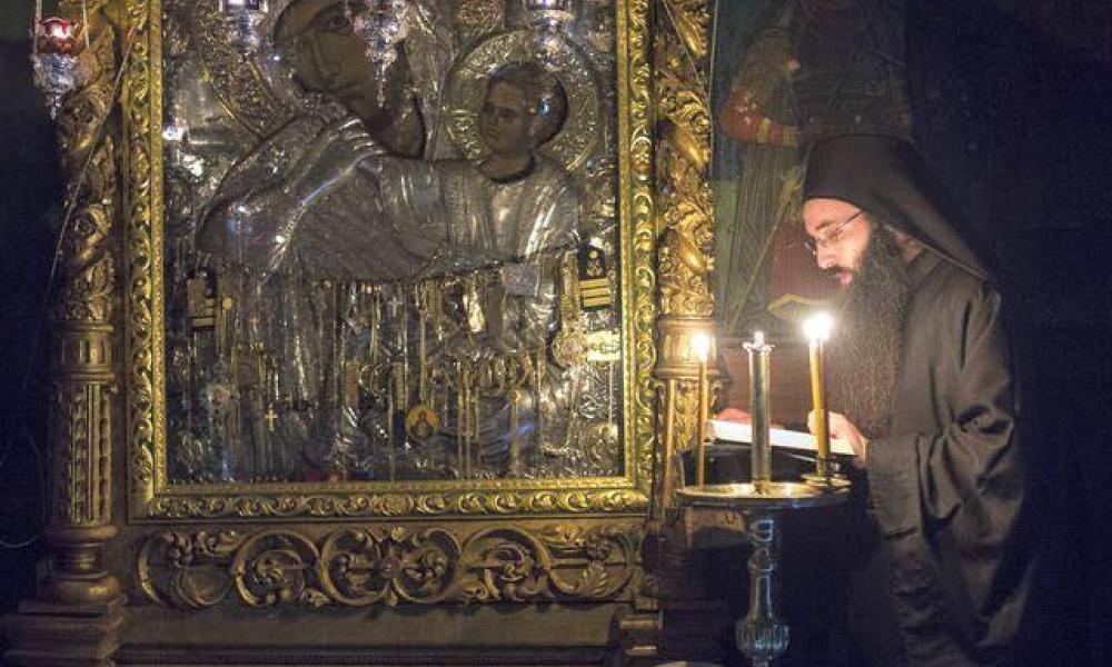 ότε – ω των θαυμασίων Σου Χριστέ Βασιλεύ- ο βρεφοκρατούμενος στις αγκάλες της Θεοτόκου Ιησούς, κινώντας το χεράκι Του έκλεισε το στόμα της Παναγίας Μητέρας Του και της είπε· «Μή Μητέρα μου, μή τους το λές. Αφησε τους να τιμωρηθούν όπως τους αξίζει, γιατί αμελούν τα μοναχικά τους καθήκοντα».