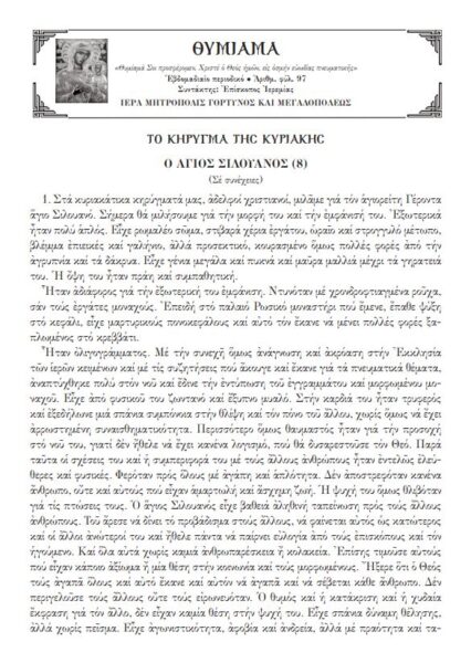 Επίκαιρο “ΘΥΜΙΑΜΑ” εκ μέρους του Σεβασμιωτάτου Μητροπολίτου Γόρτυνος και Μεγαλοπόλεως κ. Ιερεμίου, με θέμα τον Βίο του Αγίου Σιλουανού του Αθωνίτου (σε συνέχειες).