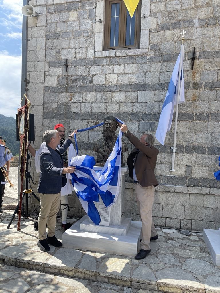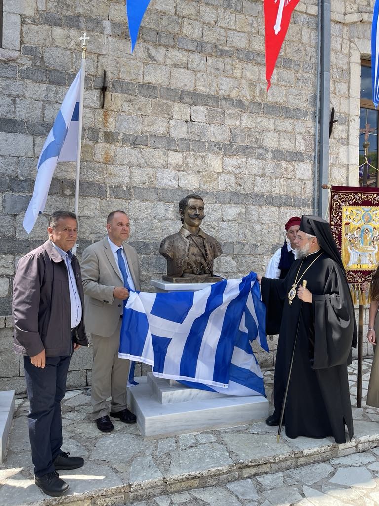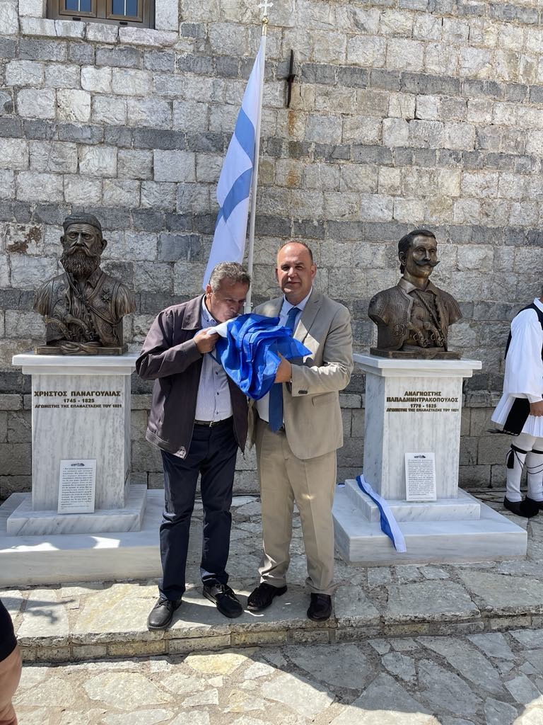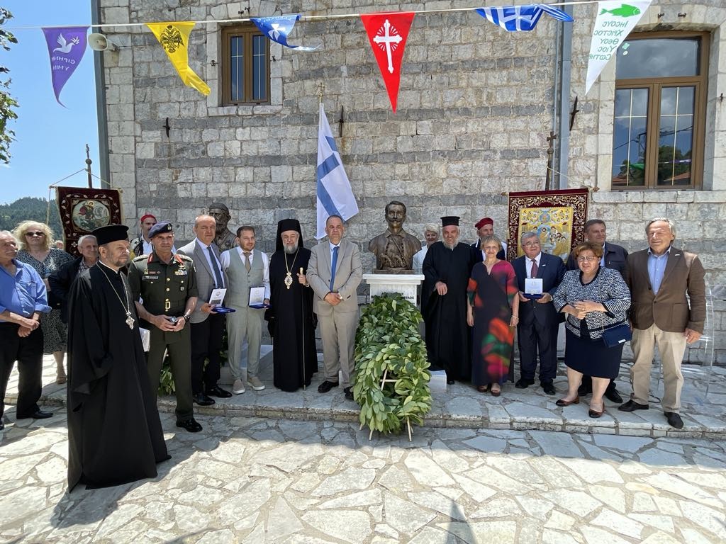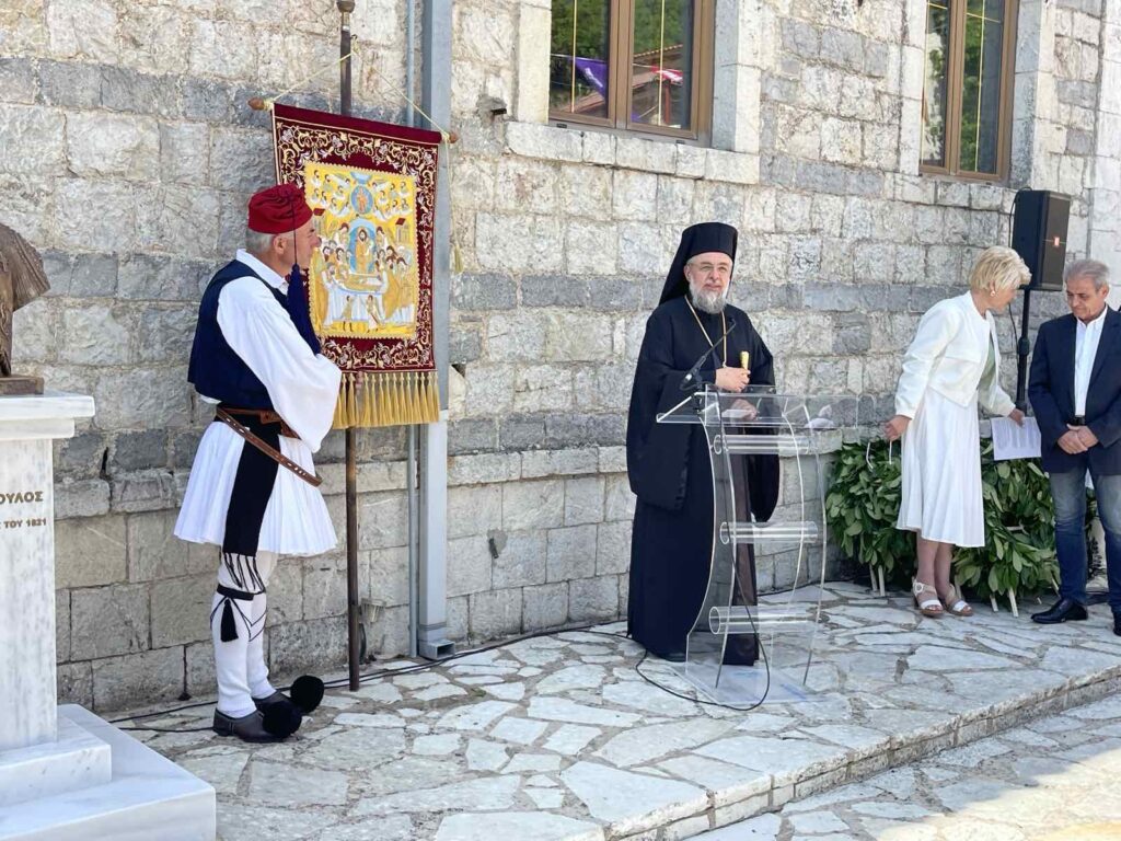 Μετά το πέρας της Θείας Λειτουργίας, ο Σεβασμιώτατος παρέστη και απηύθυνε θερμό χαιρετισμό στην εκδήλωση των αποκαλυπτηρίων των προτομών των ηρώων Χρήστου Παναγούλια και Αναγνώστη Παπαδημητρακόπουλου, γηγενών του Βαλτεσινίκου, οι οποίοι θυσιάστηκαν υπέρ Πίστεως και Πατρίδος στη μάχη των Τρικόρφων στις 23 Ιουνίου 1825, αντιστεκόμενοι γενναία στις δυνάμεις του Ιμπραήμ Πασά.