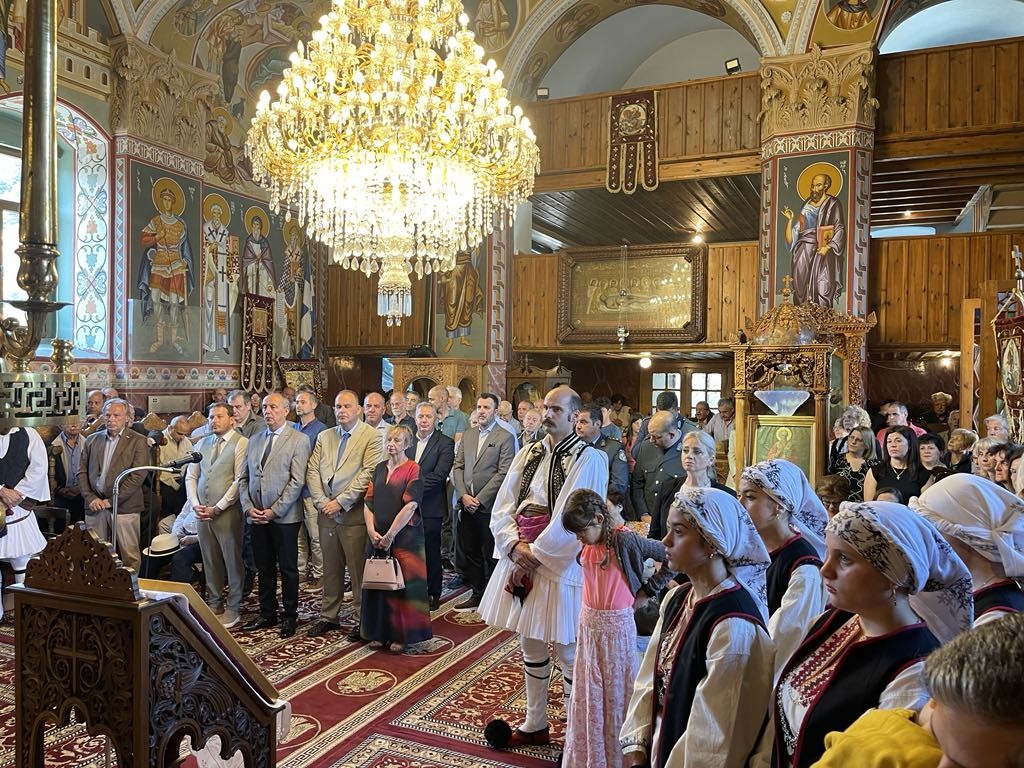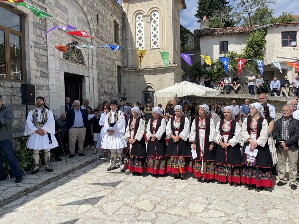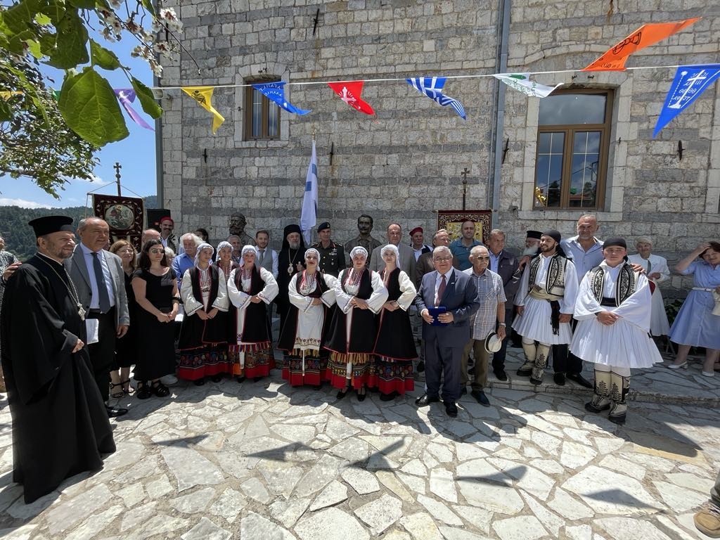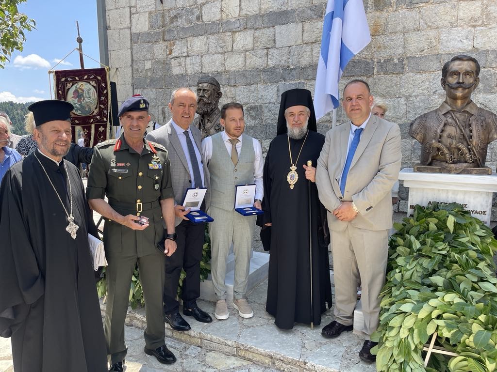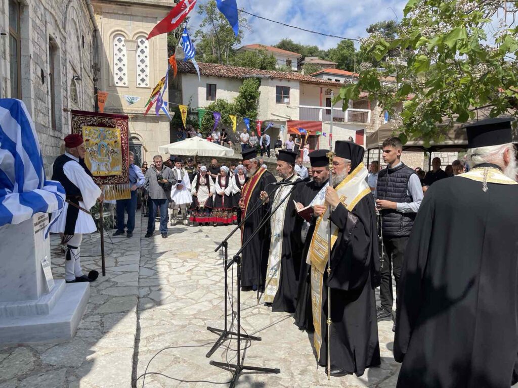 Μετά το πέρας της Θείας Λειτουργίας, ο Σεβασμιώτατος παρέστη και απηύθυνε θερμό χαιρετισμό στην εκδήλωση των αποκαλυπτηρίων των προτομών των ηρώων Χρήστου Παναγούλια και Αναγνώστη Παπαδημητρακόπουλου, γηγενών του Βαλτεσινίκου, οι οποίοι θυσιάστηκαν υπέρ Πίστεως και Πατρίδος στη μάχη των Τρικόρφων στις 23 Ιουνίου 1825, αντιστεκόμενοι γενναία στις δυνάμεις του Ιμπραήμ Πασά.