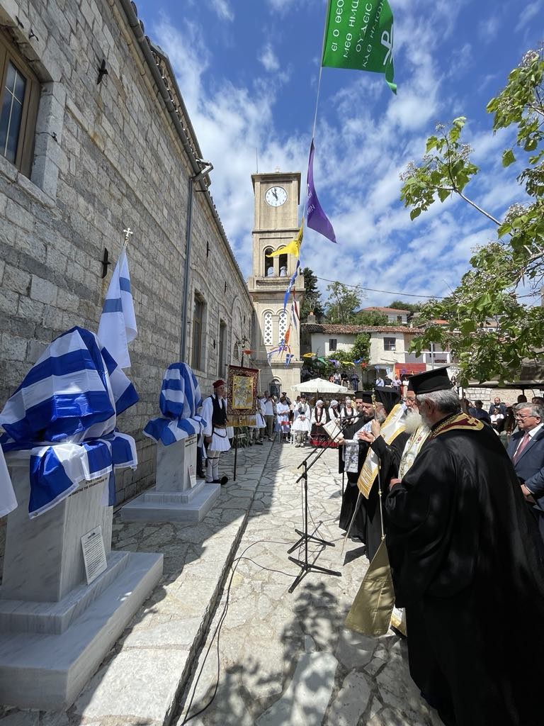 Ο Σεβασμιώτατος, χαιρετίζοντας την εκδήλωση, επεσήμανε τη σημασία της διατήρησης της ιστορικής μνήμης και της τιμής προς τους ήρωες που πρόσφεραν τη ζωή τους για την ελευθερία της Πατρίδας μας, υπογραμμίζοντας τον άρρηκτο δεσμό της Ορθοδοξίας με τον αγώνα του Γένους. Ανέφερε, χαρακτηριστικά, ότι «η Γορτυνία, όπως πάντοτε, προσέφερε στην Επανάσταση του 1821 όχι μόνο ενόπλους, αλλά και φωτισμένους ανθρώπους με υψηλό εθνικό και πνευματικό φρόνημα και ότι το «Μολών λαβέ» του Λεωνίδα συνεχίζει να ζει και να εμπνέει δια μέσου των αιώνων. Τα έθνη που τιμούν τους νεκρούς τους μένουν ζωντανά στην Ιστορία».