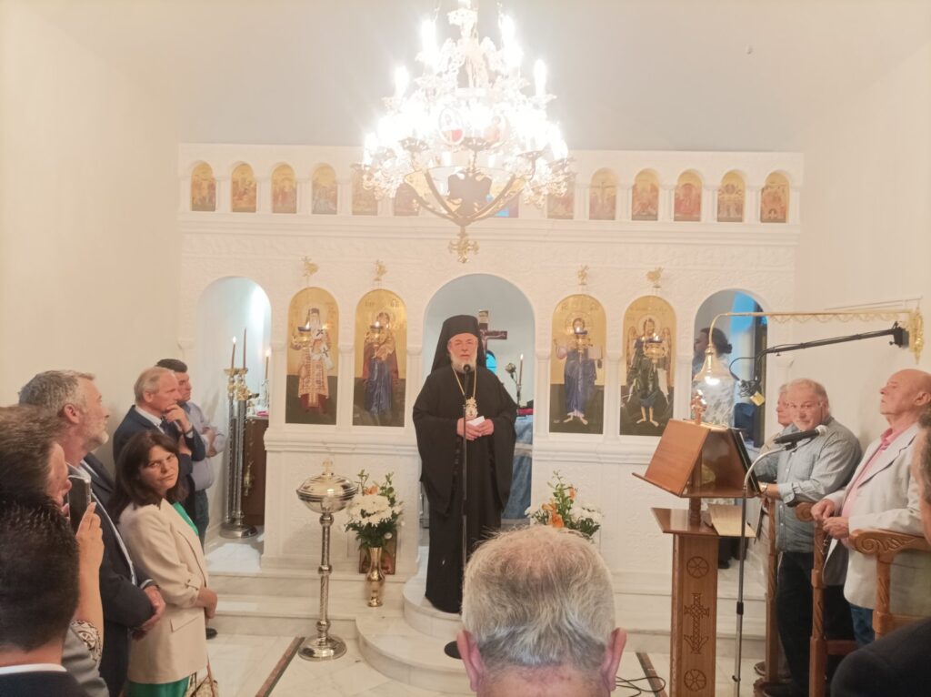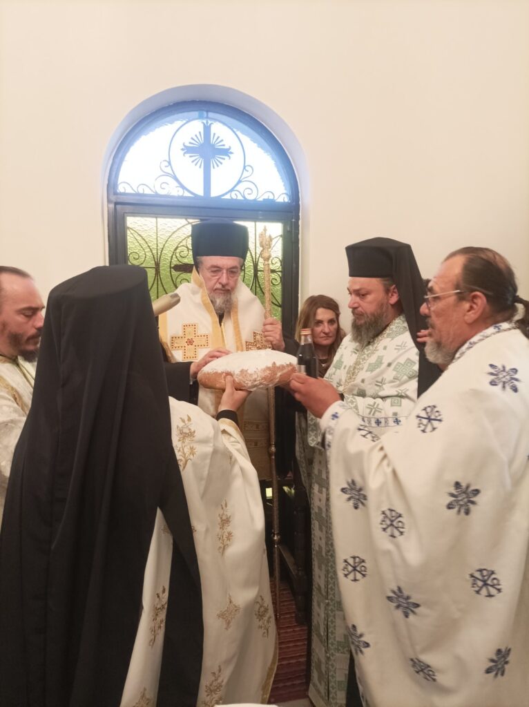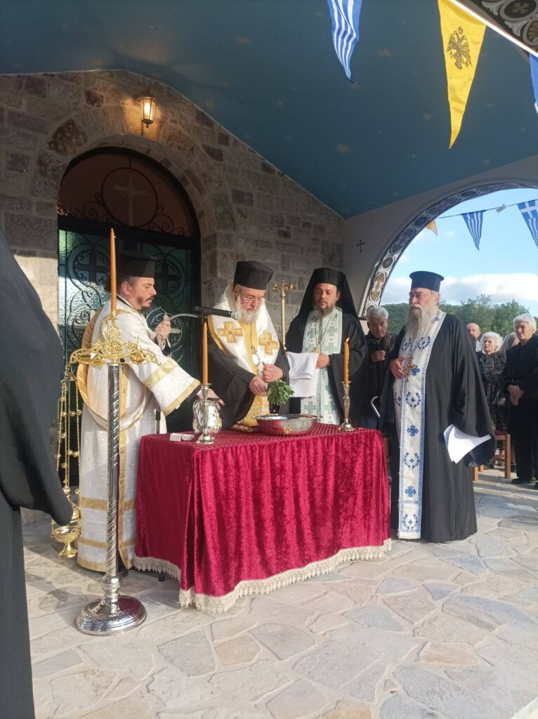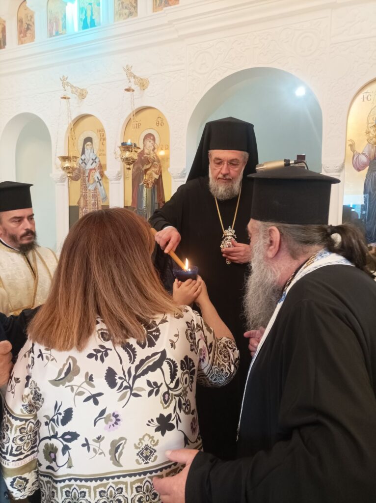 Εν συνεχεία, ο Σεβασμιώτατος χοροστάτησε στον πρώτο πανηγυρικό Εσπερινό του Ιερού αυτού Ναού και κήρυξε τον θείο λόγο, αναφέροντας χαρακτηριστικά ότι η ανοικοδόμηση νέων ναών αποτελεί μαρτυρία της βαθειάς πίστεως του λαού και όλα τα έργα της Εκκλησίας είναι συνέργεια και συνεργασία Θεού και ανθρώπων.
