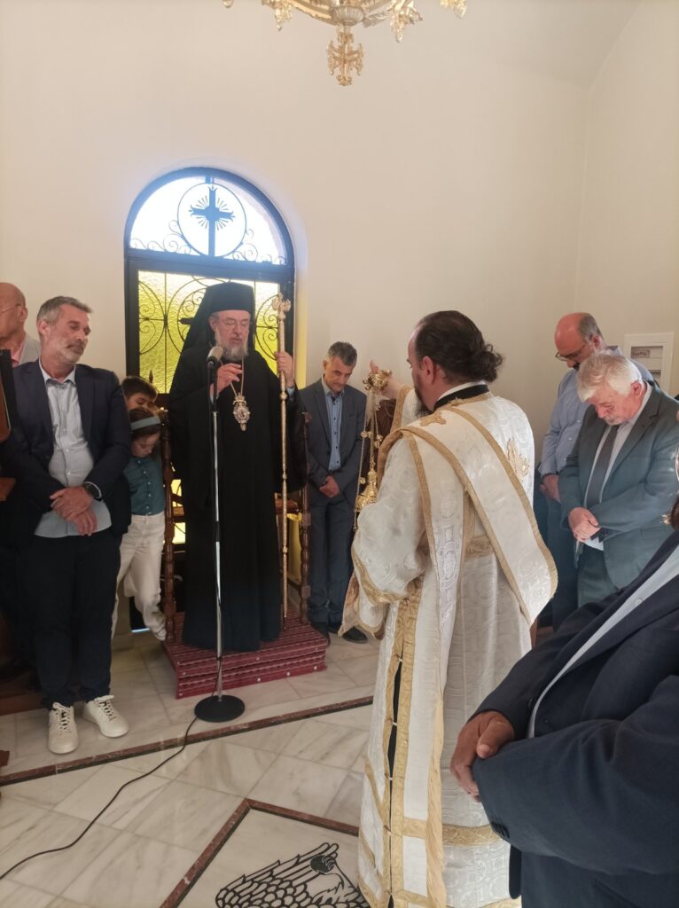 Δοξολόγησε το Θεό που δημιουργήθηκε ένα ακόμα θυσιαστήριο σε μία εποχή που χαρακτηρίζεται από φιλαυτία και εγωισμό και τόνισε ότι ο νέος αυτός ναός θα είναι ένας ακόμη φάρος που θα ακτινοβολεί το φως του Χριστού. Χαρακτήρισε δε μεγάλη ευλογία αυτό που ζούμε τα τελευταία χρόνια, ιδίως με τους νέους αγίους της Εκκλησίας μας.