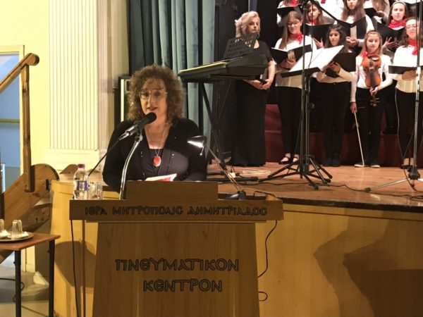Το καλλιτεχνικό μέρος το ανέλαβαν από κοινού, κατά σειρά εμφανίσεως: α) οι «ΘΕΣΣΑΛΟΙ ΜΕΛΩΔΟΙ»του Παραρτήματος της Σχολής Βυζαντινής Μουσικής της Ι. Μ. Δημητριάδος, στην Αγιά Λαρίσης, με χοράρχη τον κ. Γεώργιο Λεμονόπουλο, Πρωτοψάλτη και Καθηγητή Βυζαντινής Μουσικής. Το πρόγραμμα της χορωδίας με βυζαντινούς ύμνους παρουσίασε η Νομικός κ. Παναγιώτα Αγγελή. β) η μαθητική χορωδία του 10ου Γυμνασίου Βόλου, και με τη συμμετοχή μαθητών του Γυμνασίου Ιωλκού, υπό την διεύθυνση της κ. Κατερίνας Αποστολοπούλου, Καθηγήτριας μουσικής. Την εκδήλωση παρουσίασε γλαφυρά η κ. Γιάννα Ζήγρα – Γιαλαμά, μέλος του «Ε». Η Διευθύντρια του 10ου Γυμνασίου κ. Δανιηλίδου Κική μίλησε για την πολύωρη πρόβα των παιδιών εκτός σχολικού προγράμματος, την αναγκαιότητα ενός δημοσίου σχολείου ανοιχτού στην κοινωνία και την μεγάλη παιδαγωγική αξία τέτοιων συμμετοχών. Ο π. Θεόδωρος Μπατάκας, Πρόεδρος του «Ε», σε μία αυθόρμητη παρέμβαση, τόνισε πως στον Σύλλογο δεν υπάρχει πρώτος, δεύτερος ή τρίτος, αλλά όλοι είναι ταπεινοί εργάτες του Θεού.