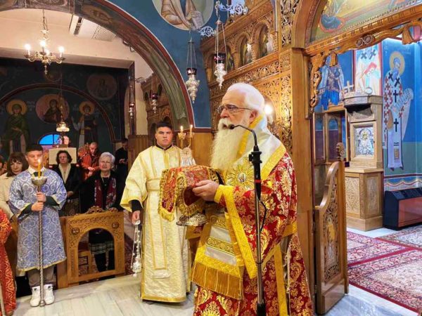 Στο τέλος της Θείας Λειτουργίας, ο Σεβασμιώτατος ευχαρίστησε τον απερχόμενο Προϊστάμενο του Ναού Αρχιμ. Γεδεών Γαλάνη για την μέχρι σήμερα διακονία του στην ενορία και συνεχάρη τον διάδοχό του Πρωτ. Απόστολο Ντόκο, ο οποίος αναλαμβάνει επικεφαλής, στην διοίκηση και στην ιεραποστολή, ευχόμενος πλούσια την ευλογία του Θεού στα νέα του καθήκοντα.