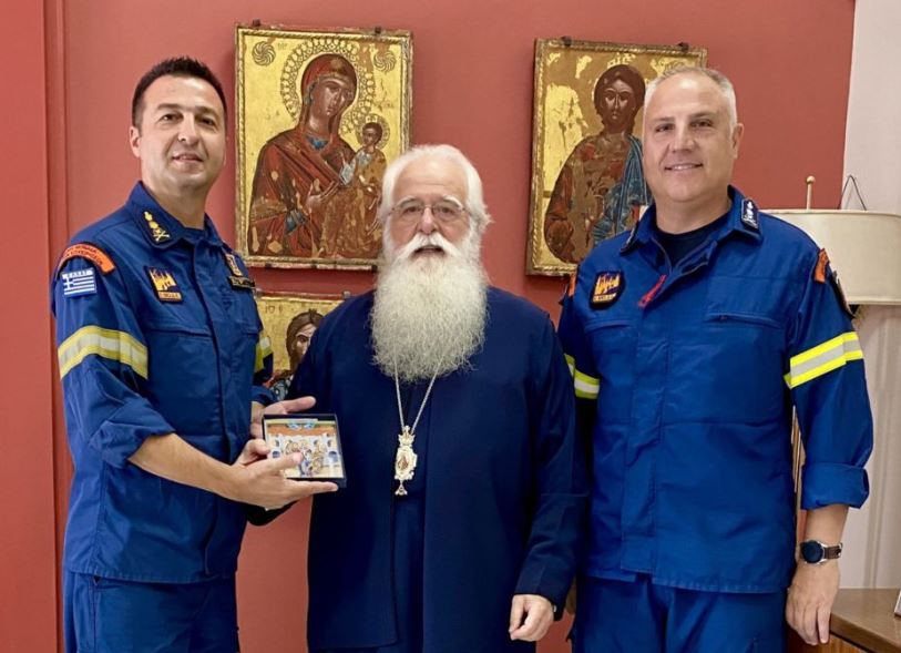 Τον Σεβ. Μητροπολίτη Δημητριάδος κ. Ιγνάτιο επισκέφθηκε σήμερα, 7 Ιουλίου 2025, στο γραφείο του στο Συνεδριακό Κέντρο Θεσσαλίας, ο Διοικητής της Ειδικής Μονάδας Δασικών Επιχειρήσεων (ΕΜΟΔΕ), Αντιπύραρχος κ. Γεώργιος Κούργιας, συνοδευόμενος από τον Υποπυραγό κ. Νικόλαο Φιλιππαίο.