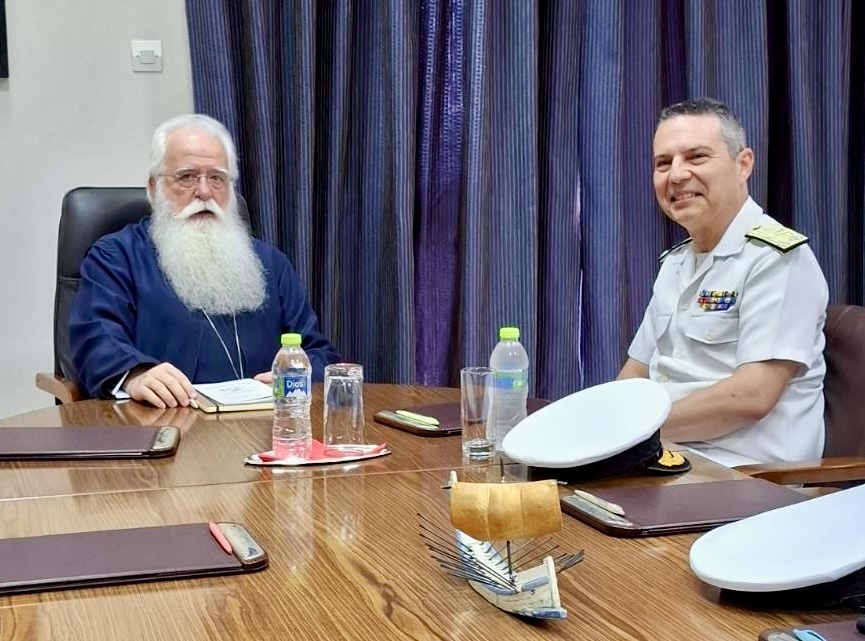 Δόθηκε, επίσης η δυνατότητα στον Σεβασμιώτατο να εκφράσει την εκτίμηση και την ευγνωμοσύνη του στο Λιμενικό Σώμα της Πατρίδας μας, για το έργο του στην διαφύλαξη της ασφαλούς ναυσιπλοΐας στις ελληνικές θάλασσες και τον αγώνα του για την διάσωση ανθρώπων, που πέφτουν θύματα παράνομων κυκλωμάτων διακινητών.