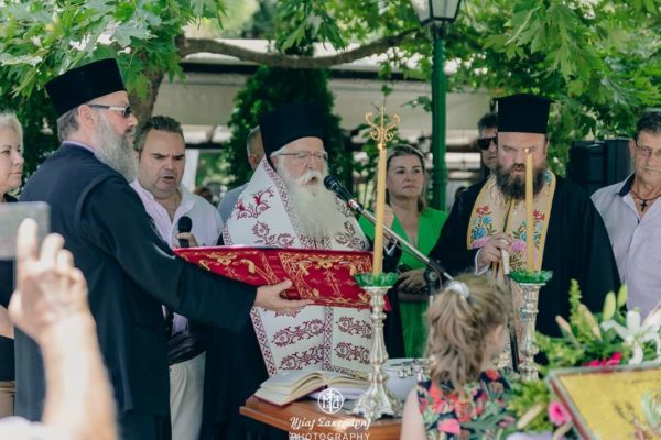 Ανήμερα της εορτής, τελέστηκε πανηγυρική Θεία Λειτουργία, προεξάρχοντος του Σεβασμιωτάτου Μητροπολίτου Θήρας, Αμοργού και Νήσων κ. Αμφιλοχίου, συλλειτουργούτων των Σεβασμιωτάτων Μητροπολιτών Αιτωλίας και Ακαρνανίας κ. Δαμασκηνού, και Δημητριάδος και Αλμυρού κ. Ιγνατίου, παρουσία πλήθους λαού.