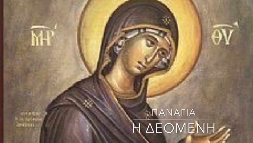 «Μια ξεχωριστή εικόνα της Παναγίας, είναι αυτή της Δεομένης. Σ’αυτή την εικόνα η Παναγία δεν κρατάει τον Χριστό στην αγκαλιά της και στα χέρια της, αλλά τα χέρια της είναι σηκωμένα ελαφρά σε στάση δέησης, για να μας θυμίζει ότι τρεις στάσεις υπάρχουν για τα χέρια μας. Η μία να τα σηκώσουμε γροθιά ζητώντας με βία τα αιτήματά μας, η άλλη, να τα αφήσουμε πεσμένα έχοντας φτάσει σε απελπισία για τις δυσκολίες. Όμως η στάση της Δεομένης Παναγίας μας δείχνει το δρόμο της προσευχής και της δέησης. Της εμπιστοσύνης στο Θεό και η Παναγία είναι οδηγός μας σ’αυτό. Εμπιστευόμαστε τον Χριστό, δεν απελπιζόμαστε και η Παναγία παραμένει πάντοτε κοντά μας, για μας και για όλον τον κόσμο.»