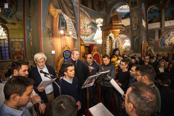 Στον Μέγα Πανηγυρικό Εσπερινό χοροστάτησε ο Σεβασμιώτατος Μητροπολίτης Αιτωλίας & Ακαρνανίας κ. Δαμασκηνός, συγχοροστατούντων των Μητροπολιτών Ναυπάκτου & Αγίου Βλασίου κ. Ιεροθέου και Δημητριάδος κ. Ιγνατίου, ενώ συμμετείχε πλήθος ευλαβών Χριστιανών.