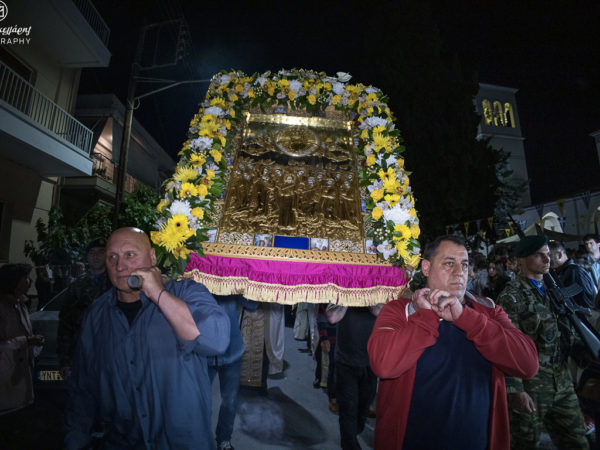 Μετά το πέρας του Εσπερινού, ακολούθησε η λιτάνευση της Ιεράς Εικόνος της Αναλήψεως στους δρόμους της ενορίας, υπό τους ήχους της φιλαρμονικής του Δήμου Βόλου.