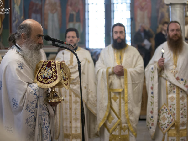 Στον Μέγα Πανηγυρικό Εσπερινό χοροστάτησε ο Σεβασμιώτατος Μητροπολίτης Αιτωλίας και Ακαρνανίας κ. Δαμασκηνός, επί σειρά ετών Πρωτοσύγκελλος της Ιεράς Μητροπόλεώς και Προϊστάμενος του Ναού, συγχοροστατούντος του Σεβασμιωτάτου Μητροπολίτου Δημητριάδος και Αλμυρού κ. Ιγνατίου.