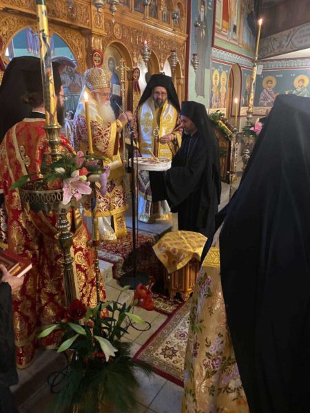 Στο τέλος της Θείας Λειτουργίας ο Επίσκοπος Αριανζού μετέφερε στον Σεβασμιώτατο τις θερμές ευχαριστίες του Μητροπολίτου Γερμανίας κ. Αυγουστίνου για την παρουσία του στην πανήγυρη και επί πλέον, για την πολυσήμαντη βοήθειά του στην μεγάλη αυτή Ευρωπαϊκή Μητρόπολη, στην οποία διακονούν Κληρικοί της Ιεράς Μητροπόλεως Δημητριάδος, αποσπασμένοι στην Γερμανία, για την κάλυψη των πνευματικών και λειτουργικών αναγκών των Ελλήνων ομογενών.