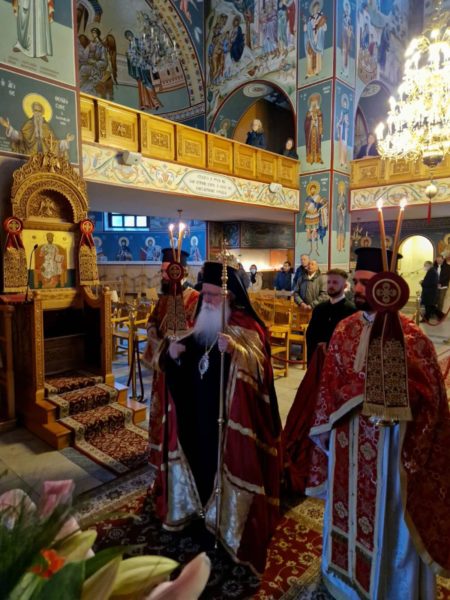 Αναλυτικότερα, ο Μητροπολίτης Δημητριάδος και Αλμυρού, την παραμονή της εορτής, χοροστάτησε στον Μέγα Πανηγυρικό Εσπερινό, παρουσία του Γενικού Προξένου της Ελλάδος στο Ντίσελντορφ κ. Βασιλείου Κοϊνη, πλήθους Ιερέων, των προέδρων των ομογενειακών σωματείων και πλήθους Ελλήνων ομογενών. Τον προσφώνησε με συγκίνηση, ο Προϊστάμενος της ενορίας και Αρχιερατικός Επίτροπος του κρατιδίου Αρχιμανδρίτης του Οικουμενικού Θρόνου Θεοφάνης Λάππας, ο οποίος προ εικοσαετίας δέχθηκε την ιερωσύνη από τον Μητροπολίτη Δημητριάδος, γι’ αυτό με ευγνωμοσύνη ανεμνήσθη των εμπειριών που βίωσε κοντά του, στο αρχικό διάστημα της ιερωσύνης του.