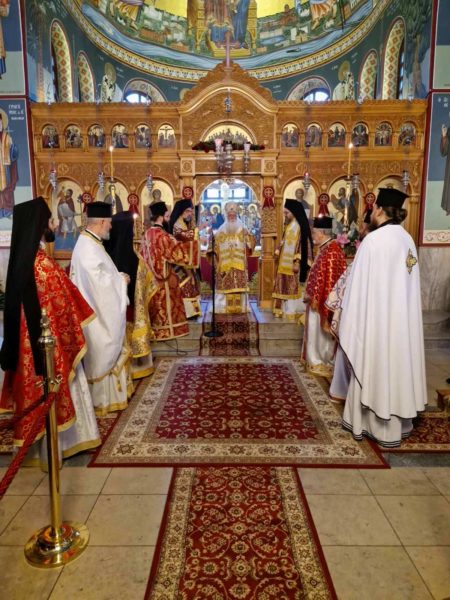 Ο κ. Ιγνάτιος επαίνεσε τον π. Θεοφάνη για το έργο του στην ενορία, για τον Ναό, τον οποίο οικοδόμησε, ένα δώρο αγάπης προς τους ομογενείς ενορίτες του. Έστρεψε δε τον νου όλων στο Φανάρι, όπου εορτάζεται η Θρονική εορτή του Οικουμενικού Πατριαρχείου, «στην Πόλη των πόλεων, εκεί όπου σκιρτά η καρδιά μας», αλλά και στην Πάτρα, στον μεγαλειώδη Ναό του Αγίου Ανδρέου, γεγονός που ενώνει τις προσευχές όλων για την ειρήνη του κόσμου, «που είναι το μεγάλο αίτημα της εποχής και σήμερα διακυβεύεται διεθνώς».