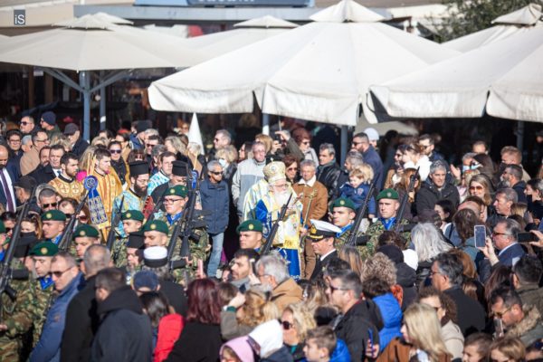 Στον χαιρετισμό του, από του σκάφους, ο Σεβασμιώτατος επεσήμανε ότι με την εορτή των Θεοφανείων «γίνεται ορατή η παρουσία του Τριαδικού Θεού στη ζωή μας. Ο Υιός, που έγινε άνθρωπος για εμάς, ο Θεός Πατήρ, που ευδοκεί και αναγνωρίζει τον  Υιό Του και το Άγιο Πνεύμα, που έρχεται για να φωτίσει όλο τον κόσμο. Τούτη την ξεχωριστή χρονιά, κατά την οποία βρισκόμαστε και πάλι όλοι μαζί, ευλογούμε τον Θεό, γιατί, όσο κι αν δεχθήκαμε πειρασμούς και ζήσαμε περιπέτειες, τελικά κρατήσαμε την ενότητά μας και ελπίζουμε για το μέλλον.