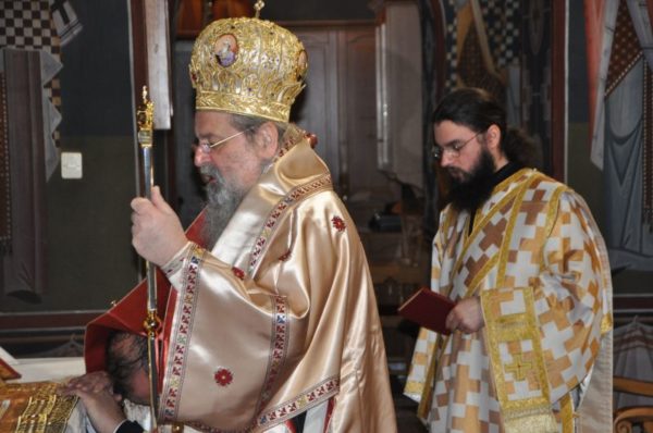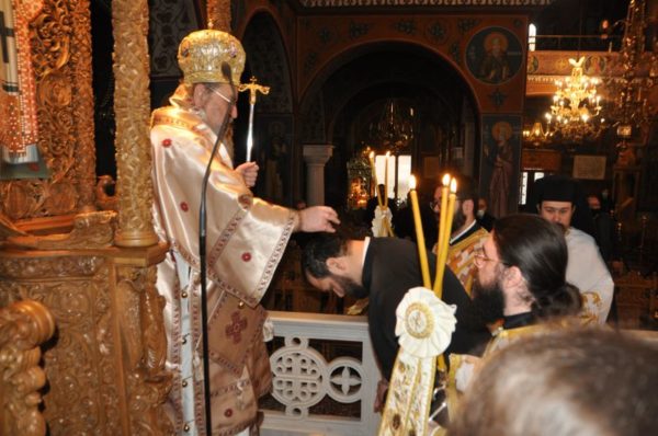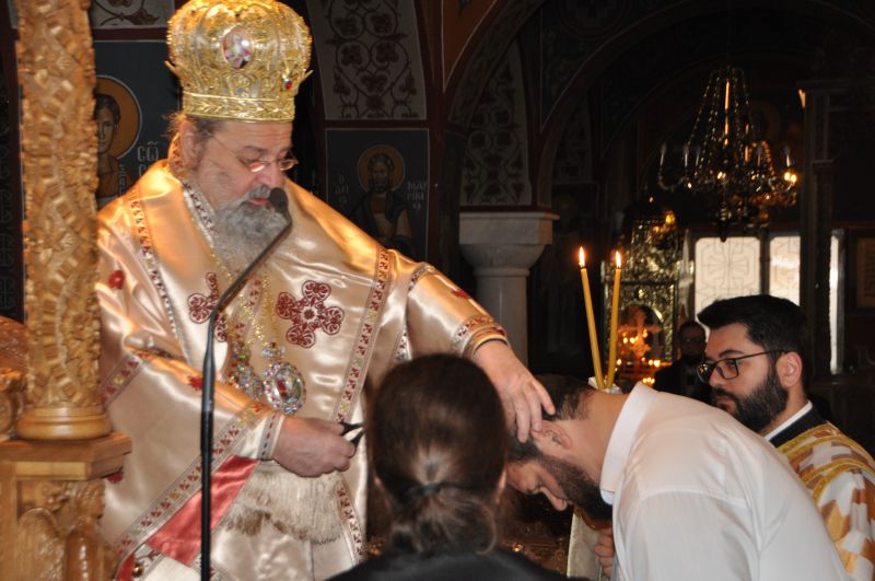 Κατά τη διάρκεια της Θείας Λειτουργίας χειροτόνησε σε Διάκονο τον π. Κυριάκο Θεοδοσιάδη.