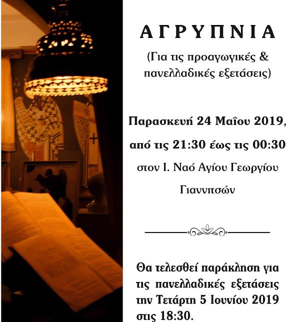 Εν όψει των προαγωγικών και Πανελλαδικών εξετάσεων θα τελεσθούν στον Ιερό Ναό Αγίου Γεωργίου Γιαννιτσών οι εξής ακολουθίες υπέρ επιτυχίας των μαθητών: