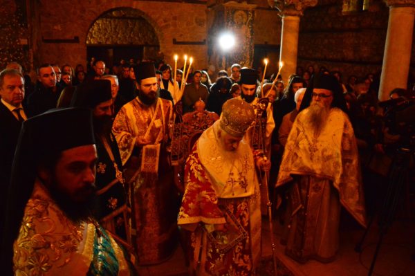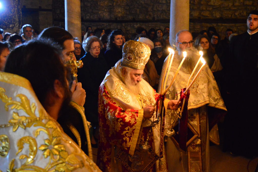 Προεξάρχοντος του Σεβασμιωτάτου Μητροπολίτη Εδέσσης, Πέλλης και Αλμωπίας κ. Ιωήλ τελέσθηκε η Αγρυπνία των Χριστουγέννων στον ιστορικό Ιερό Ναό Κοιμήσεως της Θεοτόκου Εδέσσης (παλαιά Μητρόπολη – 14ος αι.) από ώρα 22.00 (24/12) έως 02.00 (25/12).