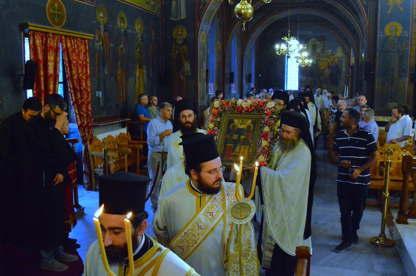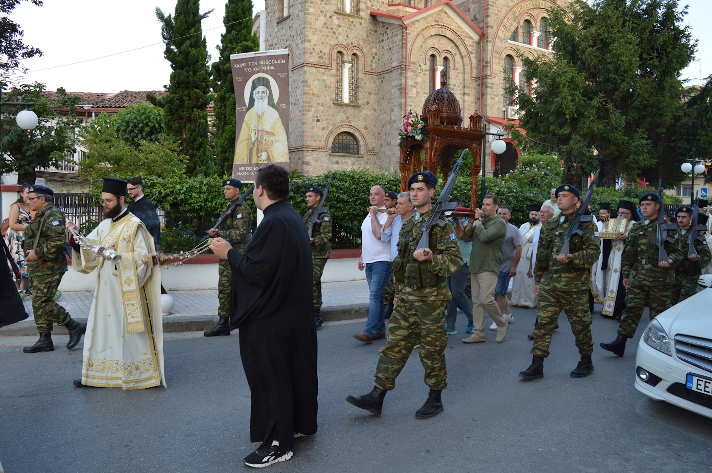 Όσοι δεν βιώνουν αυτήν την πραγματικότητα και βρίσκονται έξω από την Εκκλησία και την ζωή της Εκκλησίας, συναντούν σκοτάδι και δυστυχία. Αυτή είναι η πραγματική αιτία που ο κόσμος είναι δυστυχισμένος. Όσο πιο έντονα ζούμε την λειτουργική ζωή και την πνευματική ζωή γενικότερα, τόσο περισσότερο βιώνουμε από την ζωή αυτή τον Παράδεισο. Κατά το πέρας του Εσπερινού πραγματοποιήθηκε η λιτάνευση των ιερών λειψάνων των Αγίων Αναργύρων και του Αγίου Ευγενίου στην πόλη της Έδεσσας.