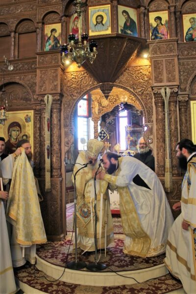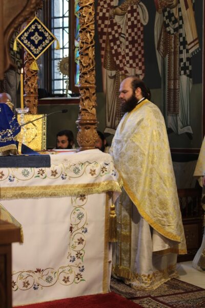 Τον θείο λόγο κήρυξε ο Αρχιμανδρίτης Εφραίμ Ανθίμου, ιεροκήρυκας της Ι. Μητροπόλεως, ο οποίος αναφέρθηκε στο πρόσωπο της Παναγίας.
