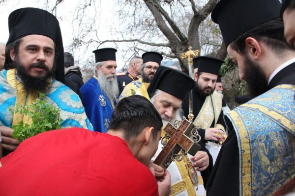 Εν συνεχεία κλήρος, άρχοντες και λαός σχημάτισαν πομπή με κατεύθυνση την τοποθεσία «Κιουπρί», όπου ενώθηκαν με τον ιερό κλήρο και πλήθος πιστών από ολόκληρη την πόλη για την τελετή του καθαγιασμού των υδάτων.
