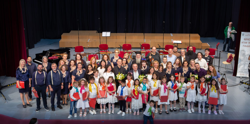 Στο τελευταίο μέρος της εκδήλωσης συμμετείχαν από κοινού οι δύο χορωδίες και το σύνολο σαντουριών του Ι. Ναού πλαισιώνοντας τον κ. Τσέρτο.