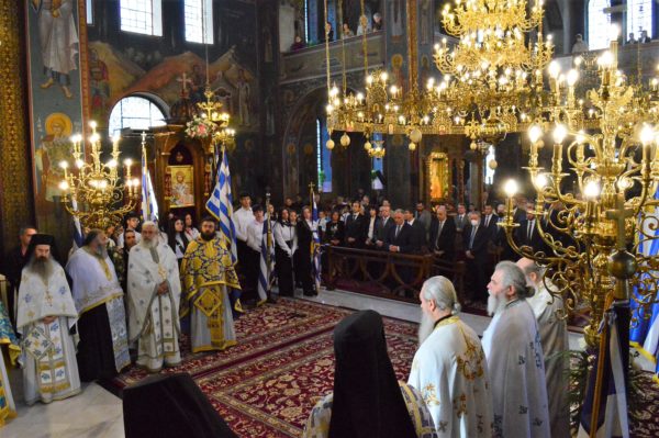 Στον Iερό Nαό παρέστησαν όλοι οι εκπρόσωποι των τοπικών αρχών, ενώ την Κυβέρνηση εκπροσώπησε ο Υφυπουργός Εσωτερικών (Μακεδονίας – Θράκης) Σταύρος Καλαφάτης.