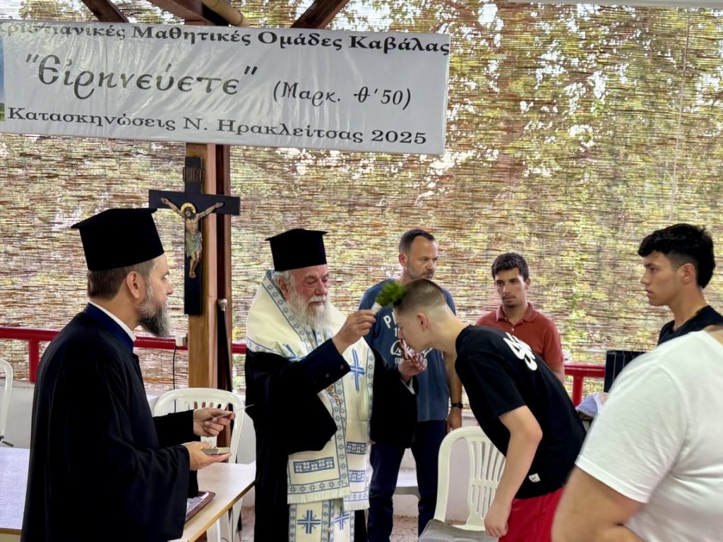 Με ιδιαίτερη χαρά και πνευματική ευφροσύνη πραγματοποιήθηκε, χθες, η ακολουθία του Αγιασμού για την επίσημη έναρξη της Κατηχητικής Κατασκηνωτικής Περιόδου των Χριστιανικών Μαθητικών Ομάδων (Χ.Μ.Ο.) Καβάλας, για αγόρια Γυμνασίου και Λυκείου, στις εγκαταστάσεις της κατασκήνωσης στην παραθαλάσσια περιοχή της Νέας Ηρακλείτσας Παγγαίου.